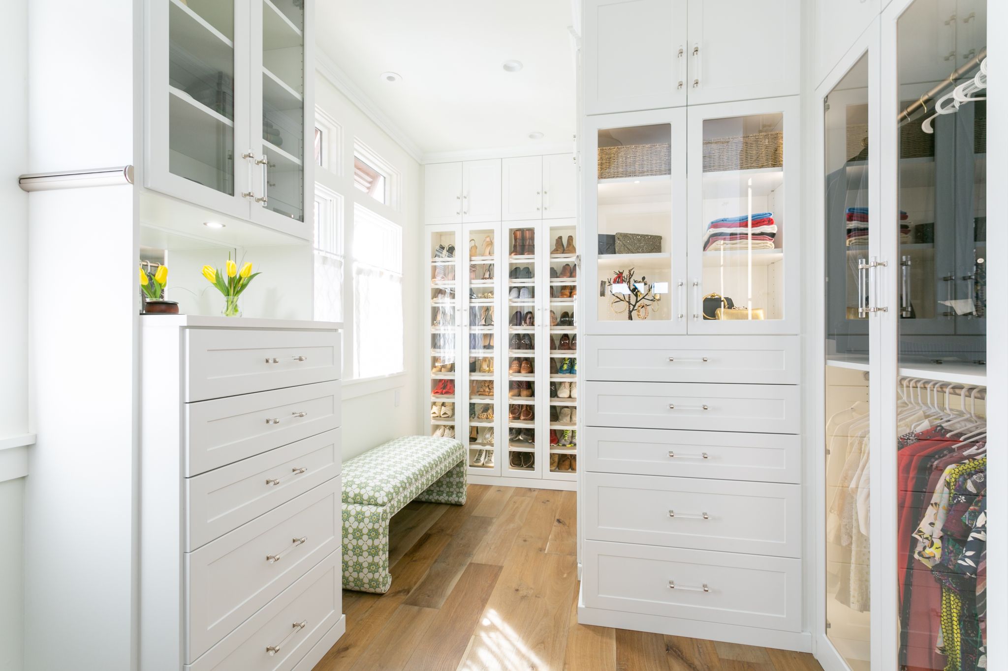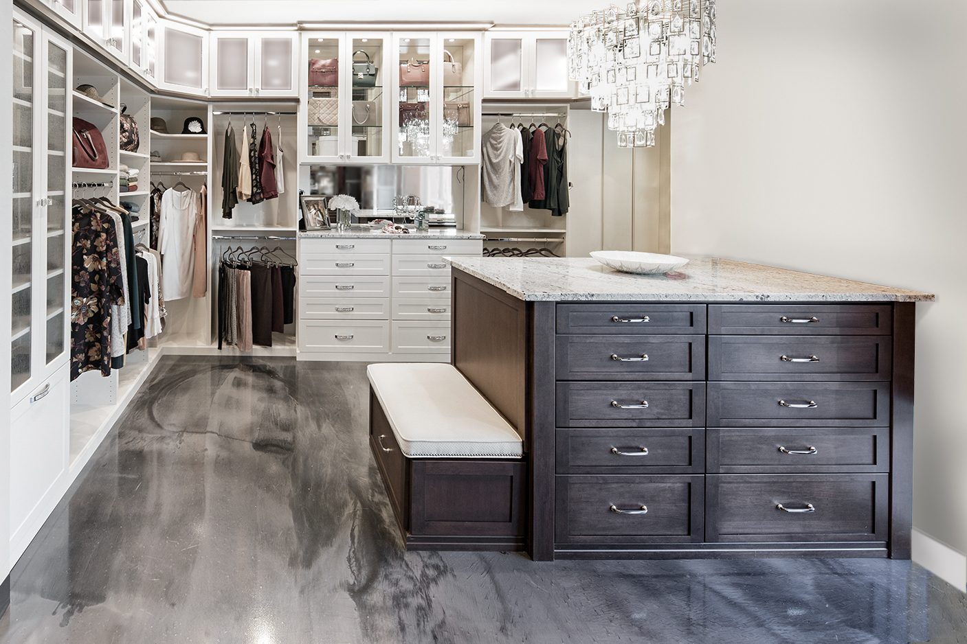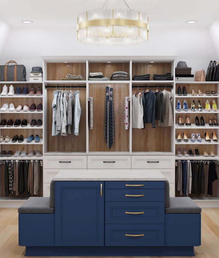 We design stunning, highly compartmentalized closet organization systems for him and her.